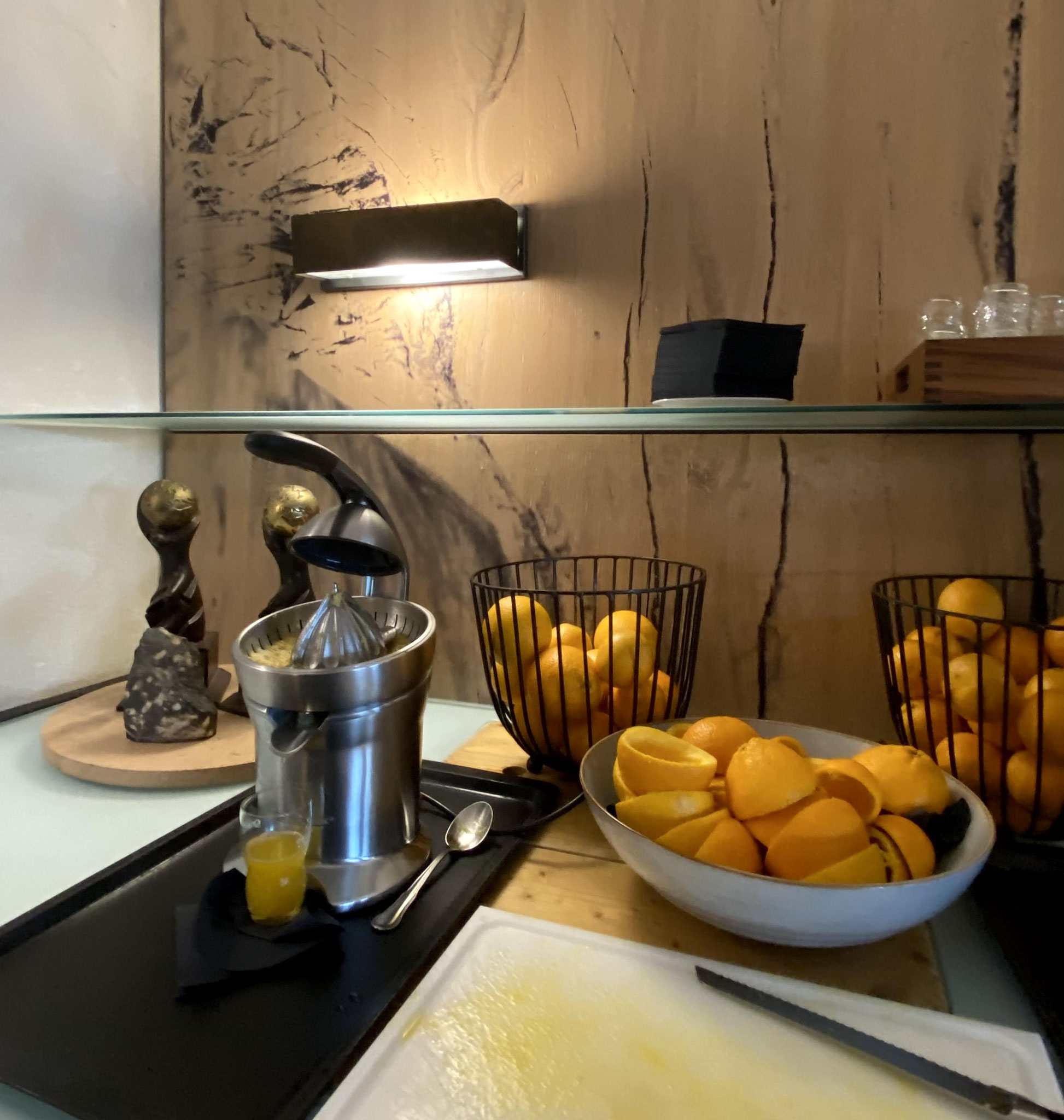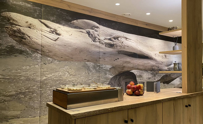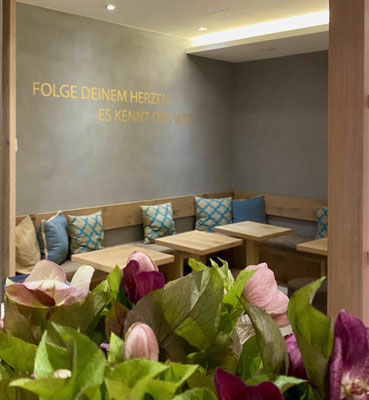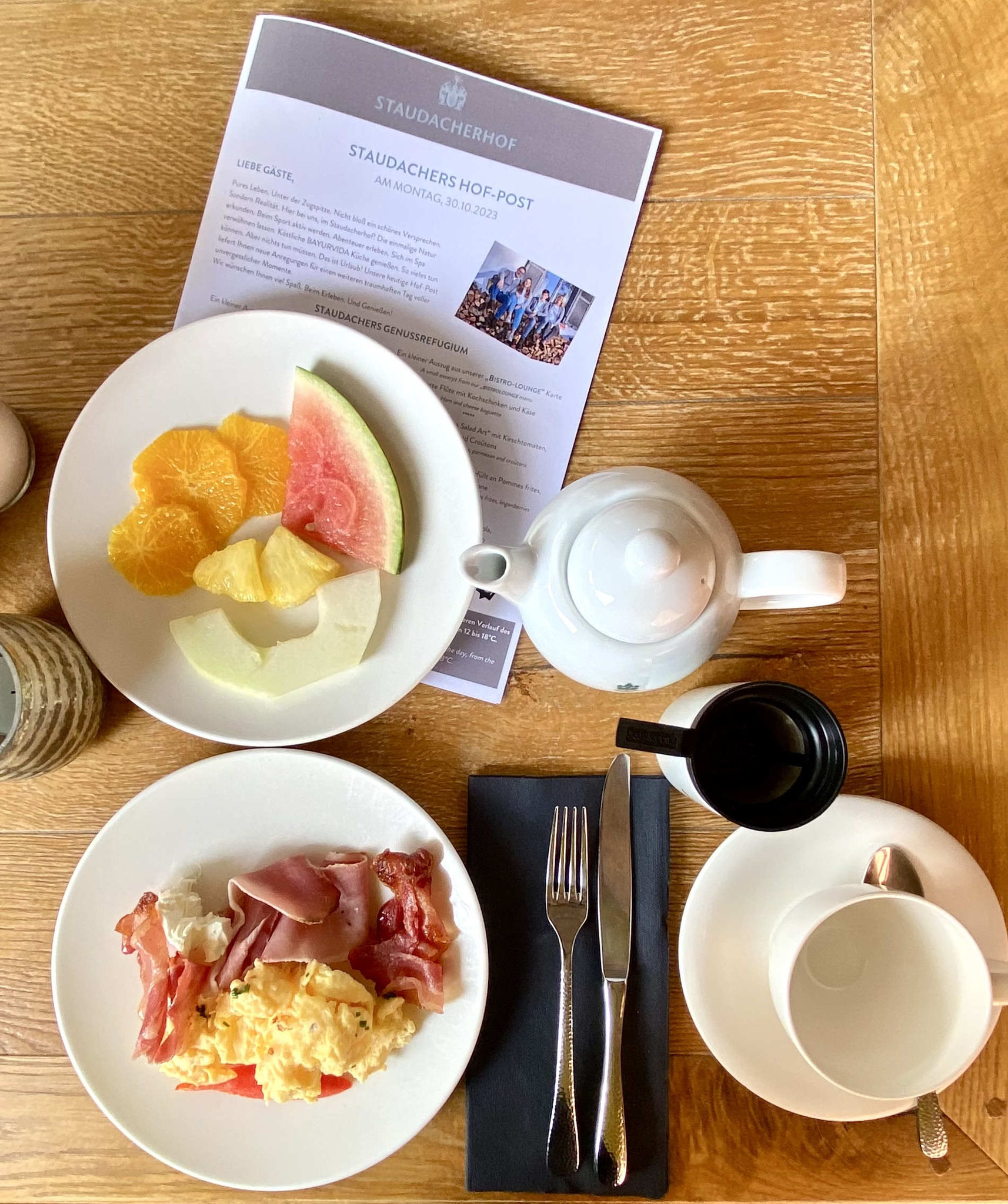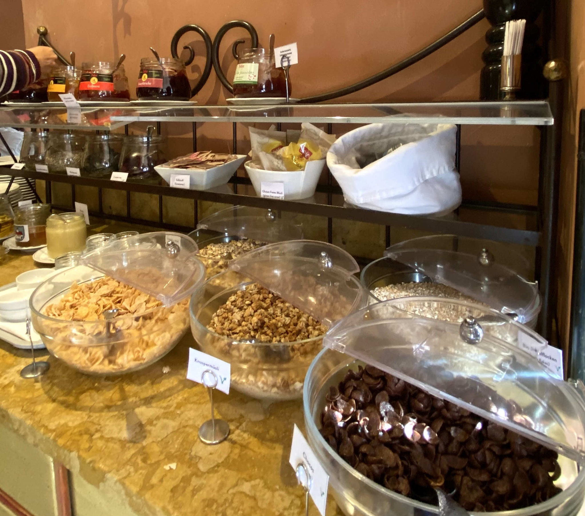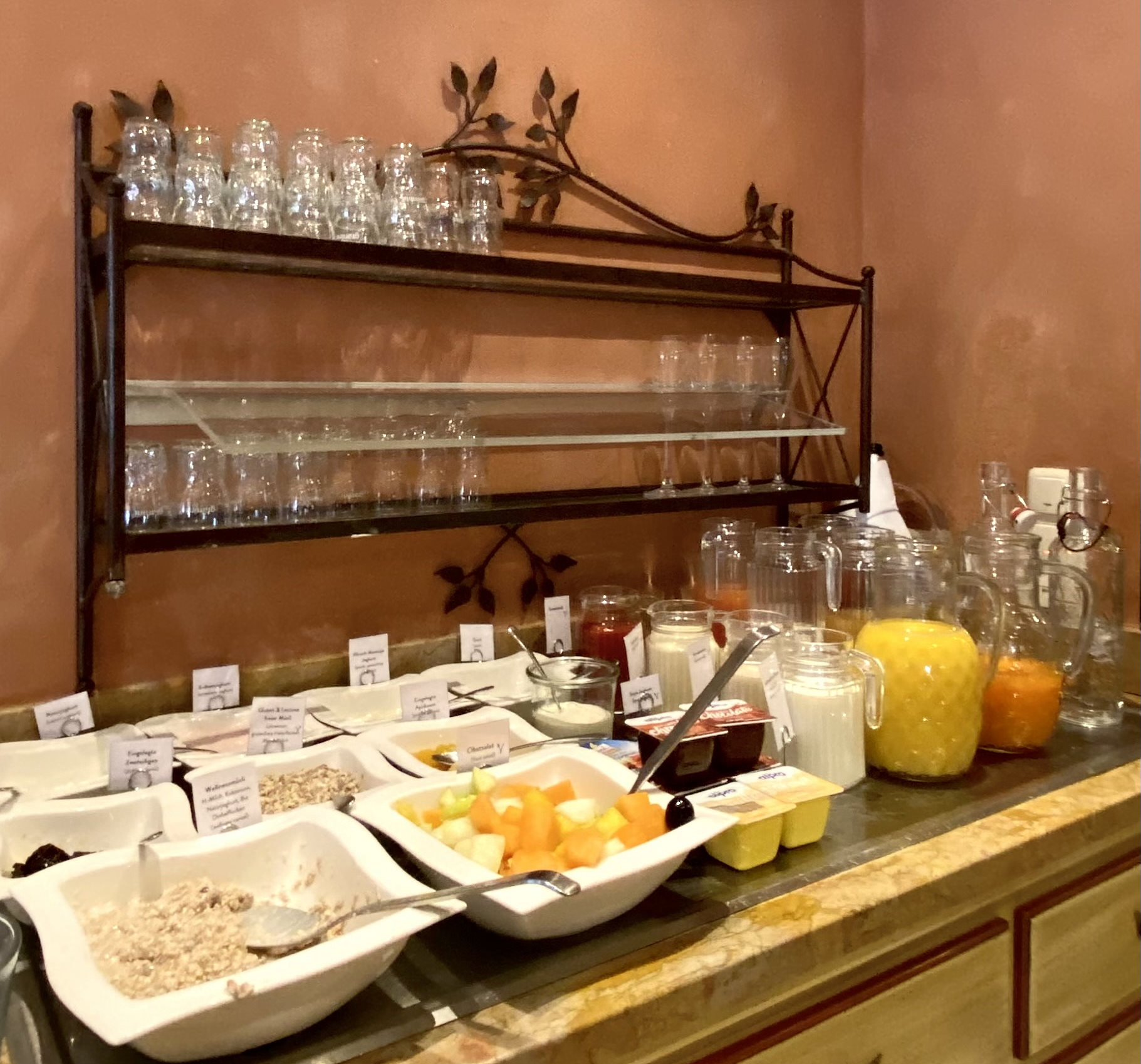 Entzückt bin ich, dass sowohl Frühaufsteher:innen, wie auch ich als Langschläferin, am Frühstücksbuffet auf ihre Rechnung kommen. Selbstgemachte Aufstriche, Wellnessmüsli, Smoothies, Schinken, Käse, Würste, Gemüse, Obst, Joghurt, Brot- und Gebäckvarianten, Eier in allen Varianten und vieles mehr, erwarten mich täglich superfrisch, für einen guten Start in den Tag. Alles, was das Herz begehrt, damit meine Lebensgeister optimal geweckt werden und bleiben.