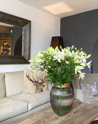 Mein besonderes Highlight: Der erste Blick auf den großen Lilienstrauß. Ein Blickfang im Empfangsbereich. Die Blumenpracht verleiht ihm eine prachtvolle und zugleich elegante Note, die die Stimmung des Hotels noch mehr unterstreicht. Der Strauß symbolisiert nicht nur Schönheit, sondern auch die Liebe zum Detail, die überall zum Ausdruck kommt.
