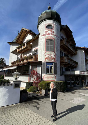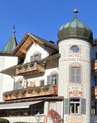 Einiges werde ich erleben, denn diesmal bin ich alleine unterwegs, das ahne ich schon. So bin ich voller Vorfreude, als ich in die Seitenstraße nahe dem Zentrum einbiege, mein Navi folgend. Schon sehe ich den Zwiebelturm, das Kennzeichen vom STAUDACHERHOF, einem ****S Wellnesshotel, das ich schon von Fotos kenne. Ich bin am Ziel. Oh, welch sensationeller Anblick!