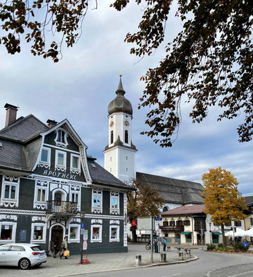 Ich überwinde mich, weiterzufahren. Muss mich losreißen von diesem schönen Anblick. Soll ich doch mein Ziel im Herzen von Garmisch-Partenkirchen erreichen? Ein bekannter Ort in Bayern, nahe der Zugspitze, mit 2.962 m der höchste Berg Deutschlands. Für Skifahrer, Eisläufer und Wanderer, auf 708m Seehöhe gelegen, ein echtes Eldorado. Garmisch gilt als eleganterer Stadtteil, Partenkirchen mit seinen Straßen aus Kopfsteinpflaster, verströmt ein traditionell bayerisches Ambiente und erfreut mich mit seiner authentischen Architektur im Stadtzentrum.